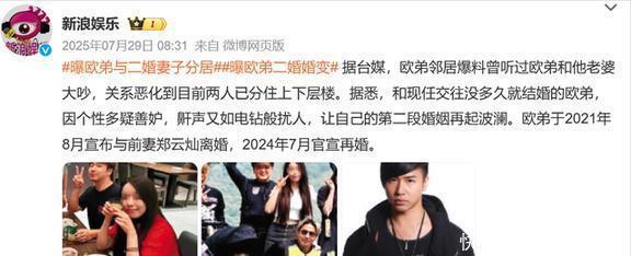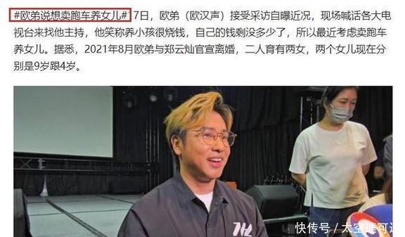 事业不顺利,感情生活也出了问题。2021年,欧弟和前妻郑云灿离婚了,据说抚养费给得不少,他自己都调侃说钱不够用,得卖车来养女儿。